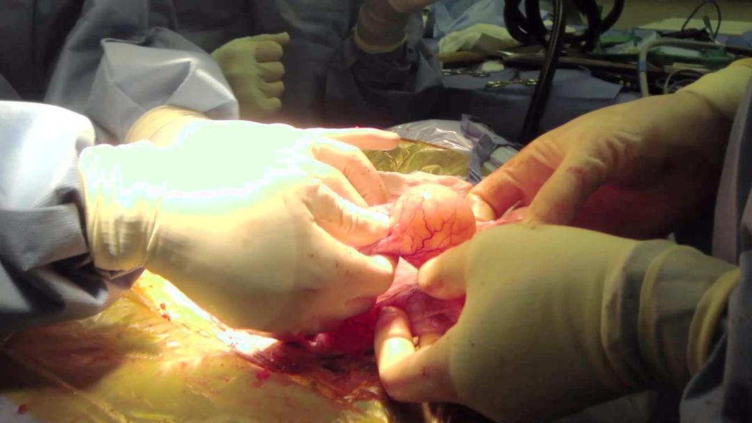 Demonstration of transplastron coeliotomy, with removal of both the ovaries and the oviducts containing eggs.